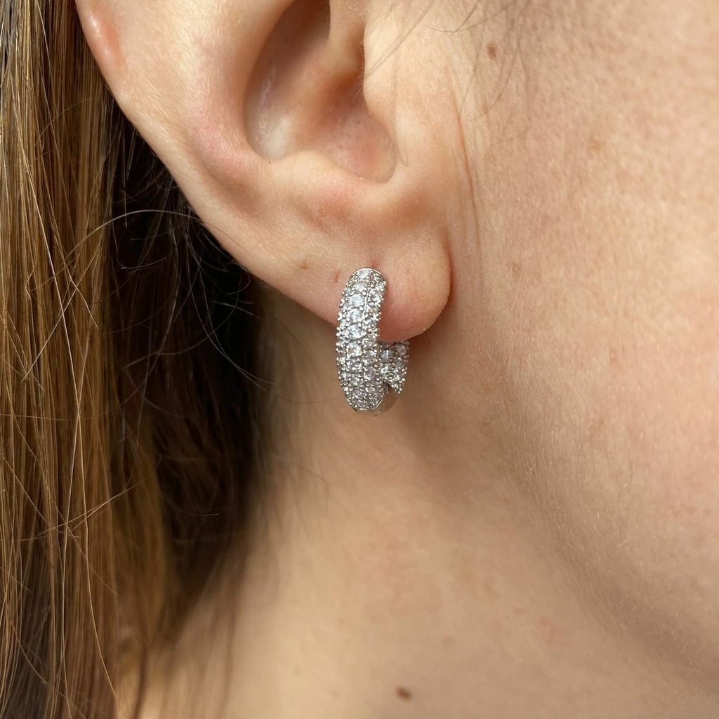Brinco de argola em aço cravejado com zircônia e com banho de ródio.