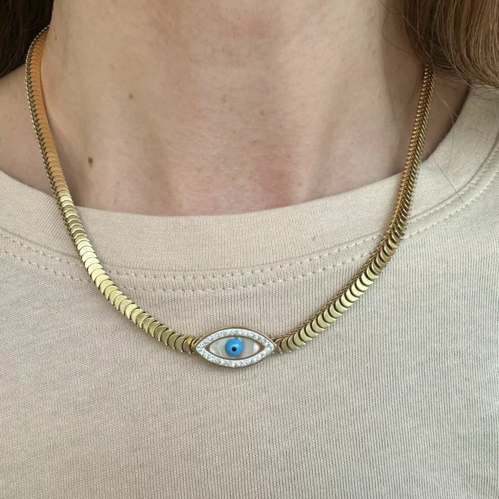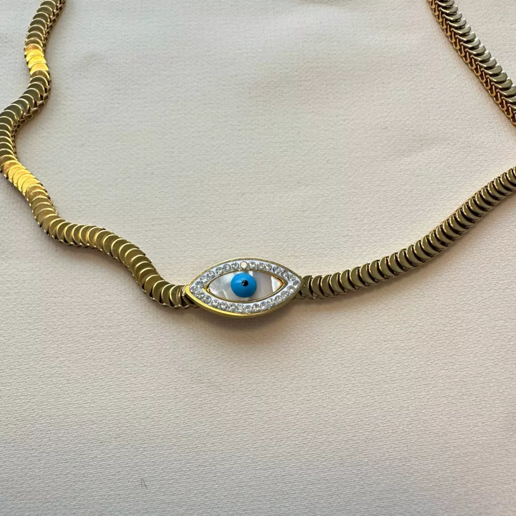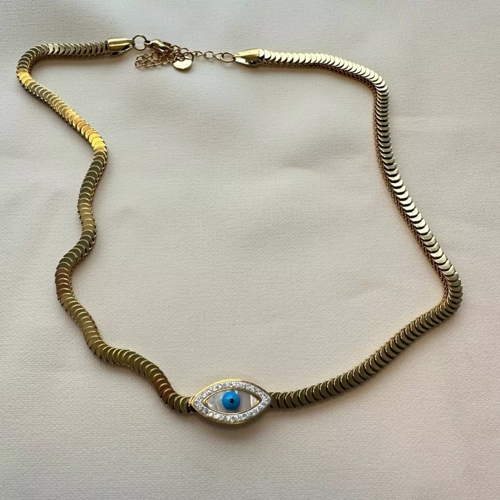 Apresentamos o Colar Escamas Olho Grego, uma fusão encantadora entre o simbolismo protetor do Olho Grego e a beleza das escamas. Esta não é apenas uma peça é um amuleto de estilo que atrai admiração e proteção.