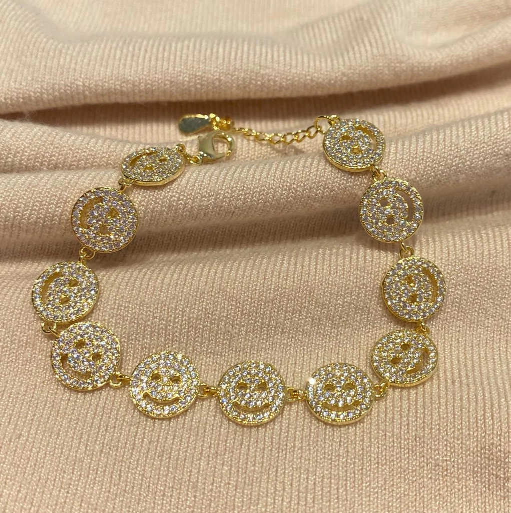 Pulseira com smiles cravejados com zircônia e com banho de ouro 18k.